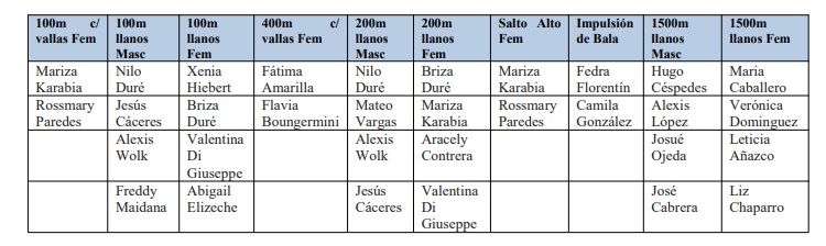 La Federación Paraguaya de Atletismo informa que ha designado a los responsables de especialidades de la Dirección General Deportiva como sigue: