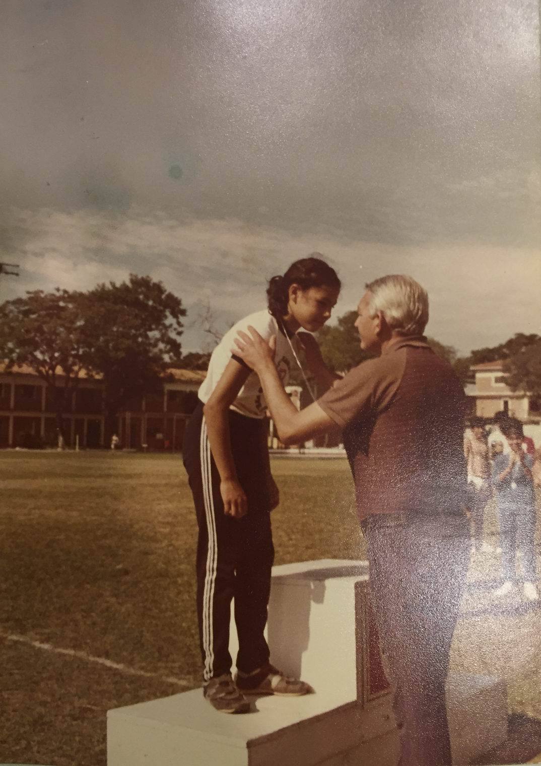 La primera medalla que recibió Natalia fue de las manos de su padre. La primera medalla que recibió Natalia fue de las manos de su padre.