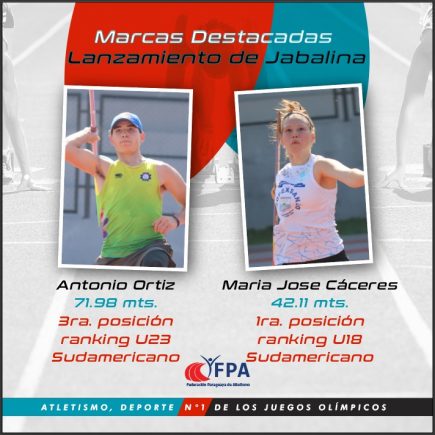 Antonio Ortiz y María José Cáceres se destacaron en lanzamiento de jabalina en el Festival de saltos y lanzamientos realizado en el Comité Olímpico Paraguayo (COP) el fin de semana. Ortiz, realizó un lanzamiento de 71.98 metros el cual lo deja en la tercera ubicación en el ranking sudamericano en la categoría U23 y noveno …